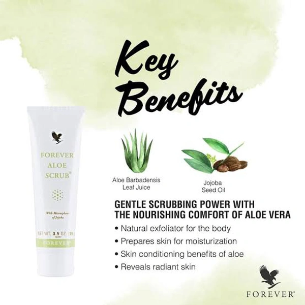 Only Forever can bring you such a gentle and refreshing exfoliator with the skin conditioning benefits of pure aloe vera gel. There’s a powerful secret inside every tube of Forever Aloe Scrub® - pure jojoba oil beads. These microspheres gently scrub away dead skin cells and debris that accumulate in the pores of your skin.