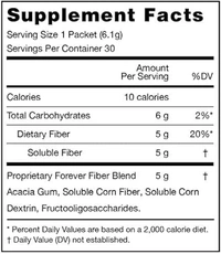 Each packet gives you the same amount of fiber as a cup-and-half of brown rice or two slices of whole wheat toast without the calories or carbs! Forever Fiber® is a great between meal choice because it can contribute to feelings of fullness, therefore helping you control appetite and cravings. Forever Fiber® also includes prebiotic fiber, which helps strengthen and promote good bacteria. This is a great way to add some balance to your diet and fuel a healthier lifestyle.