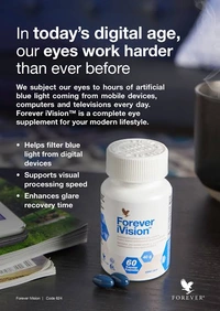With today's modern challenges, eye supplements are not only for adults looking to protect their eyes from age- related macular degeneration. Teens and adults of all ages can benefit from Forever iVisionTM to support visual processing speed and help replenish macular pigment, enhance glare recovery time and fight expOSure to blue
